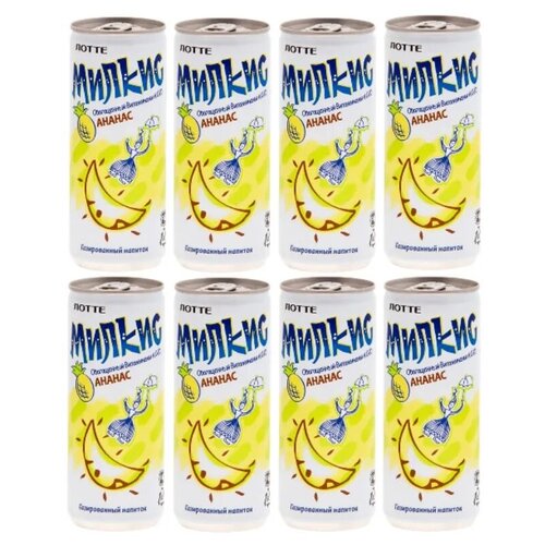 Напиток газированный безалкогольный Milkis (Милкис) со вкусом Ананаса / 8 банок по 250 мл.