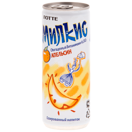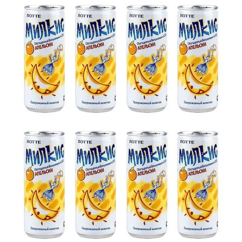 Напиток газированный безалкогольный Milkis (Милкис) со вкусом Апельсина / 8 банок по 250 мл.