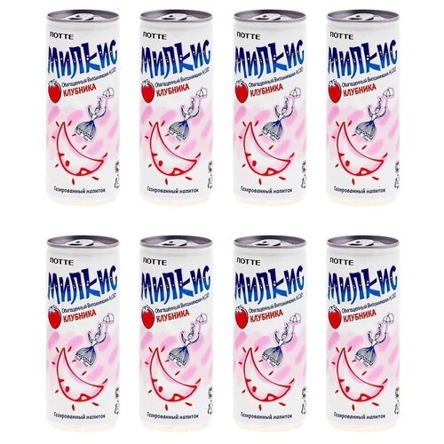 Напиток газированный безалкогольный Milkis (Милкис) со вкусом Клубники / 8 банок по 250 мл.