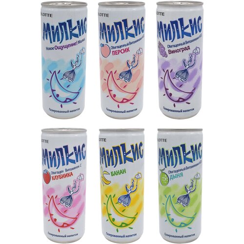 Набор газированных напитков Милкис (Milkis) с разными вкусами, 6 банок
