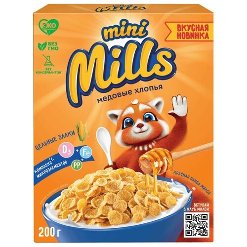 Хлопья кукурузные Mini Mills медовые, обогащенные витаминами и железом 200г