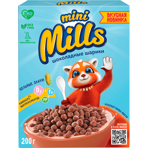 Шарики кукурузные Mini Mills шоколадные, обогащенные витаминами и железом 200г