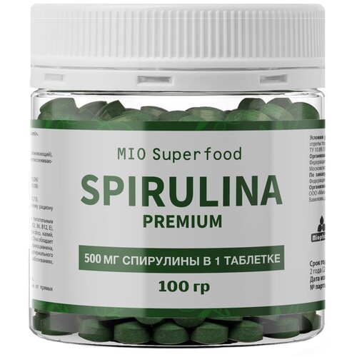 Спирулина (100г.) 200 таб. по 500 мг. прессованная в таблетках 100 гр, натуральная водоросль спирулина суперфуд