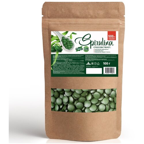 Спирулина (100г.) 200 таб. по 500 мг. прессованная в таблетках 100 гр, Дой -пак, натуральная водоросль спирулина суперфуд