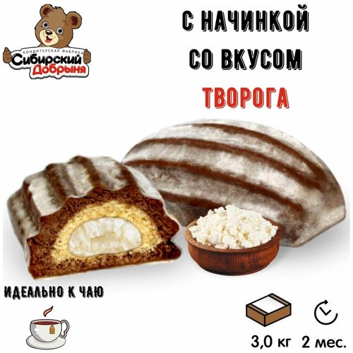 Пряники сибирские гостинцы с начинкой со вкусом творога глазированные 3 кг / мишка в малиннике / Сибирский добрыня