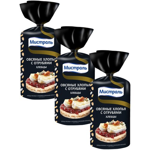 Хлебцы Мистраль рисовые с отрубями и овсяными хлопьями 100г, 3 шт