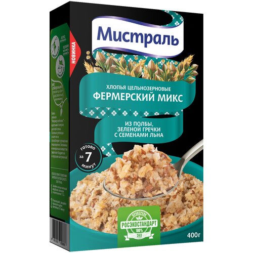 Хлопья Мистраль фермерские цельнозерновые из полбы, 400 г