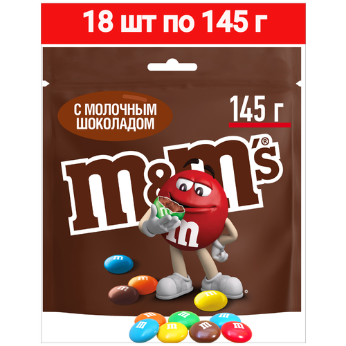 Драже M&M’s с молочным шоколадом, покрытое хрустящей разноцветной глазурью, 1 блок (18 шт по 145г)