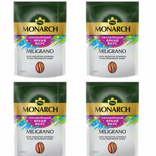Кофе растворимый Monarch Miligrano с молотым кофе, 200 г х 4 шт