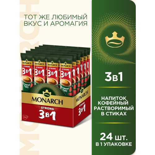 Растворимый кофейный напиток Monarch Крепкий, 3 в 1, в стиках, 24 шт.