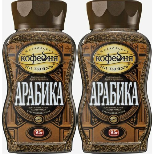2шт х 95г. Кофе растворимый, Московская Кофейня на паяхъ Арабика 100% натуральный сублимированный, 95 гр. X 2шт