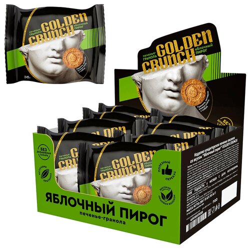 Печенье гранола овсяное Golden Crunch Яблочный пирог, коробка 32штуки (8 уп по 4шт)