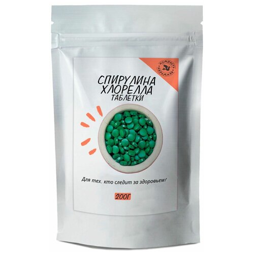 Спирулина и Хлорелла прессованная в таблетках / 200 таб. по 500 мг. / 100 гр, натуральная водоросль / Суперфуд