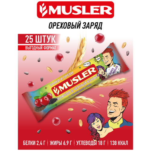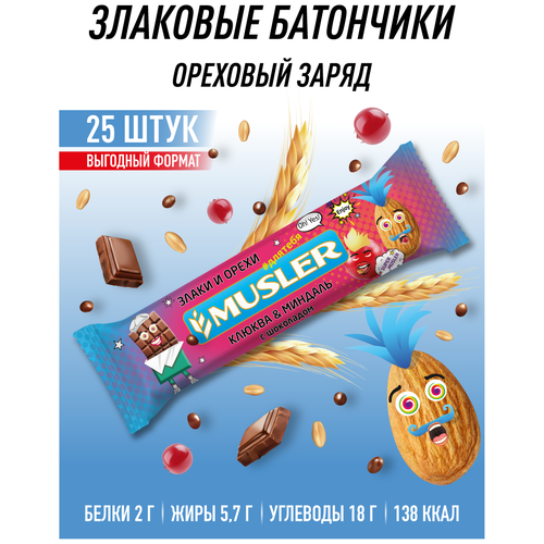 Ореховый батончик MUSLER "Клюква, миндаль с шоколадом" 30г (25шт)