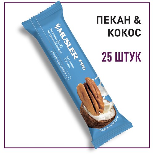 Ореховый батончик мюсли без сахара Musler PRO "Пекан-Кокос" 40г (25шт)