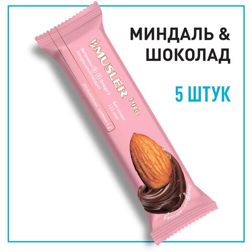 Ореховый батончик мюсли без сахара Musler PRO "Миндаль с шоколадом" 50г (5 шт)