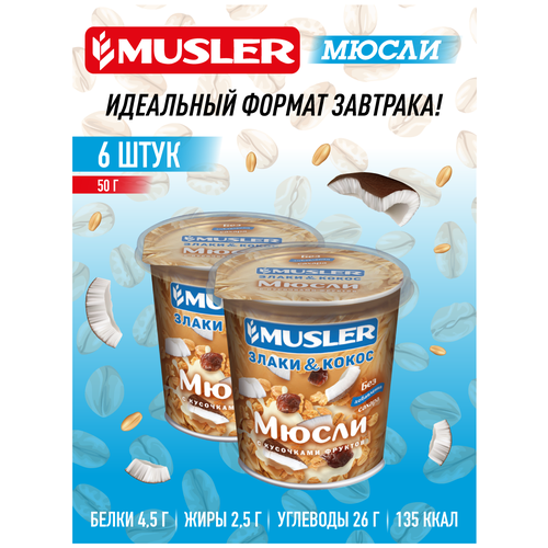 Сухие завтраки "Мюсли злаки и кокос" MUSLER 50 г.(6шт)