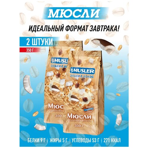 Сухие завтраки "Мюсли злаки и кокос" MUSLER 350 г (2шт)
