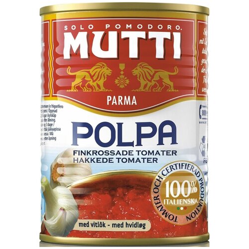 Томаты консервированные резаные кубиками в томатном соке с Чесноком Mutti 400г/ для приготовления соуса/ для первых и вторых блюд