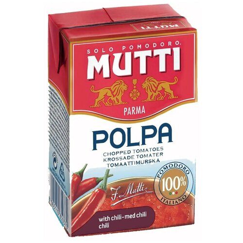 Томаты Mutti резаные кубиками в томатном соке с острым перцем, 390 г