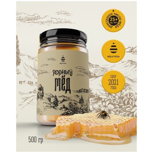 Мед натуральный горный разнотравье, нетто 500 грамм/правильное питание/постный продукт/натуральная замена сахара
