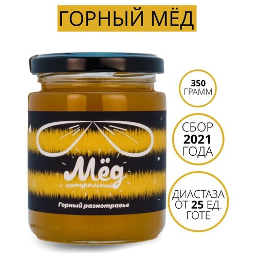 Мед натуральный горный разнотравье, нетто 350 грамм/правильное питание/постный продукт/натуральная замена сахара