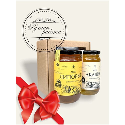 Набор подарочный Мед натуральный горный, Акациевый и Липовый 1кг ( 2 банки по 500 грамм)подарок / правильное питание/постный продукт