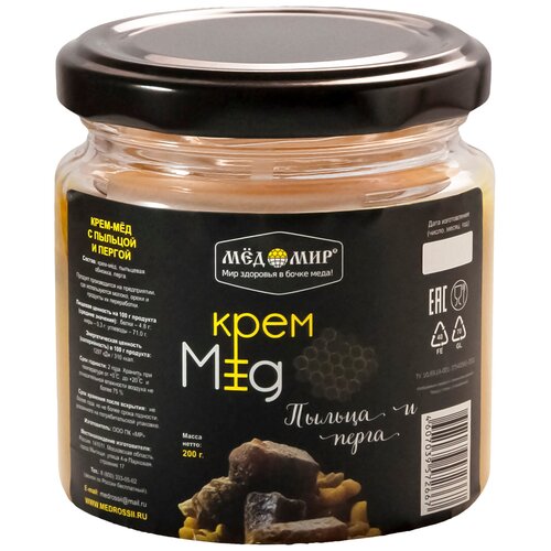 Крем-мёд с цветочной пыльцой и пергой 200 гр.
