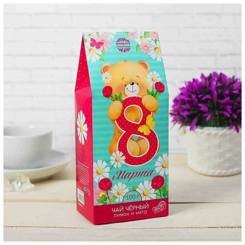 Чай чёрный «8 Марта»: с ароматом лимона и мяты, 100 г.