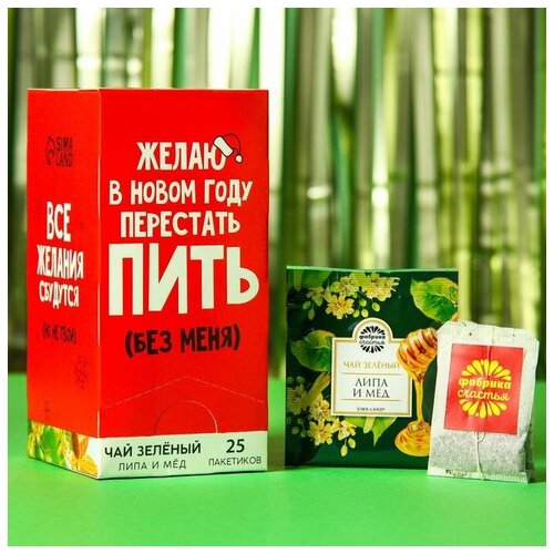 Чай зелёный «Желаю в новом году перестать пить без меня», вкус: липа и мёд, 25 пакетиков, 45 г.