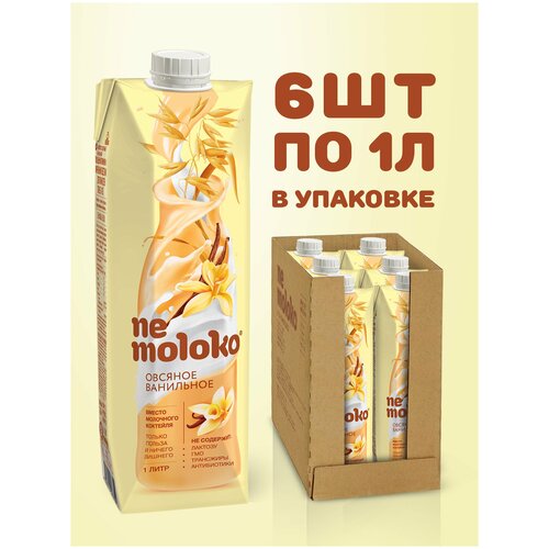 Напиток Nemoloko Ванильный, овсяный, обогащенный витаминами и минеральными веществами, 6 шт по 1 л