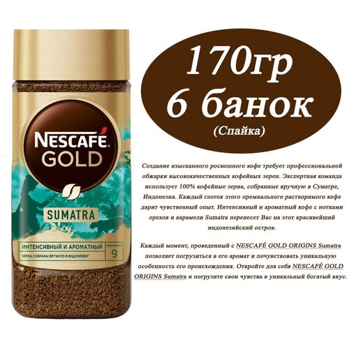 Nescafe Gold Origins Sumatra 170гр х 6шт Кофе растворимый сублимированный