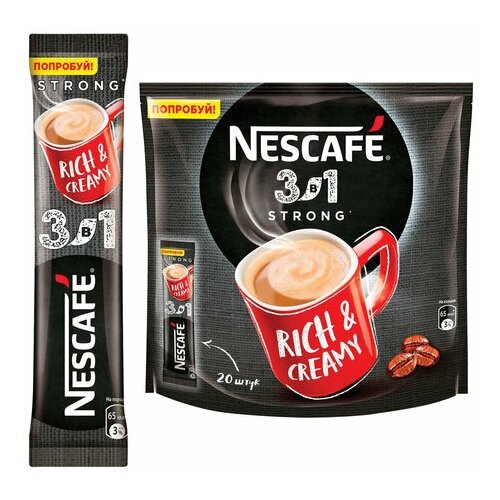 Кофе растворимый порционный NESCAFE "3 в 1 Крепкий", комплект 20 пакетиков по 14,5 г, 12460873