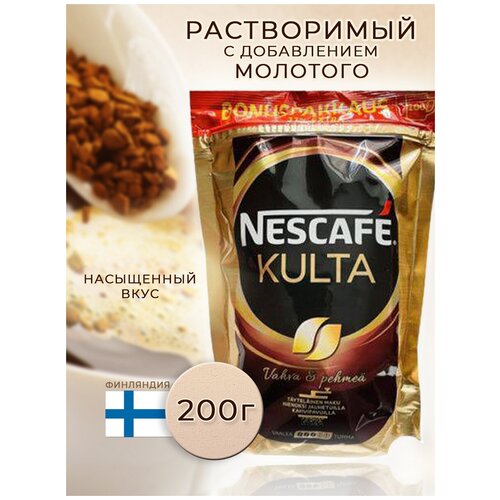 Кофе растворимый сублимированный Nescafe Kulta (Нескафе культа) 1 штх200 гр с добавлением молотого кофе Финский в подарок