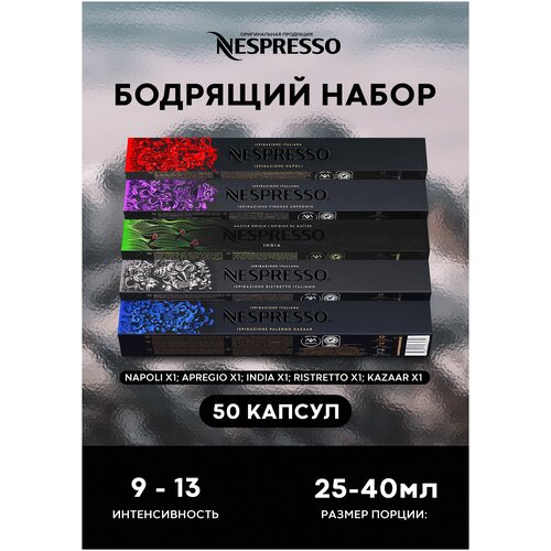 Кофе в капсулах Nespresso для кофемашины оригинал набор Бодрящий 50 капсул