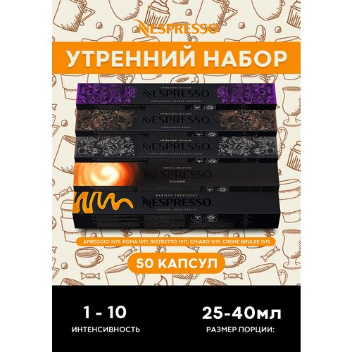 Кофе молотый в капсулах набор капсул "Утренний" Nespresso для кофемашин системы Original , 50 шт