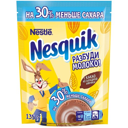 NESQUIK. На 30% меньше сахара. Какао-напиток быстрорастворимый, обогащенный для питания детей дошкольного и школьного возраста , 135г