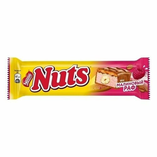 Шоколадный батончик Nuts Duo фундук малиновый раф, 60г 12 штук