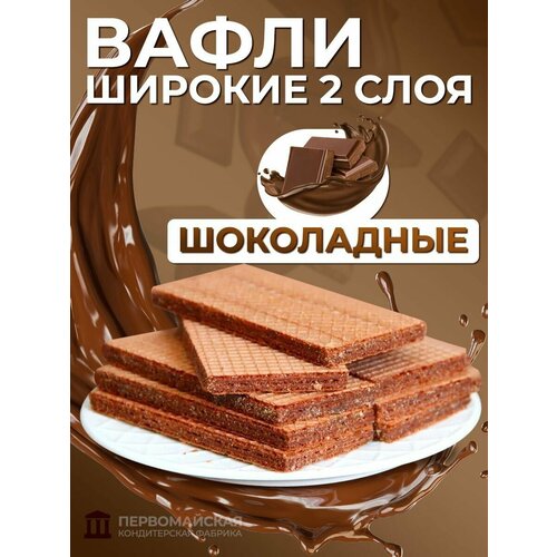 "Вафли широкие 2 слоя десертные шоколадные, кондитерские вафли с начинкой, сладости, топинг, 1,4 кг, Первомайская кондитерская фабрика "