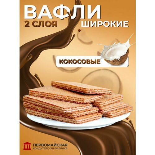"Вафли широкие 2 слоя десертные коксовые, кондитерские вафли с начинкой, сладости, топинг, 1,4 кг, Первомайская кондитерская фабрика "г