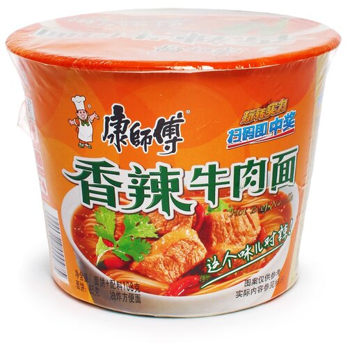 Лапша быстрого приготовления, Kang Shi Fu, Hot Beef Noodle, с острой говядиной, 112гр. 2 шт