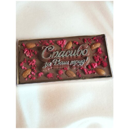 Молочный бельгийский шоколад ручной работы; Шоколадная открытка "Спасибо за Ваш труд"
