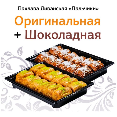 Пахлава "Пальчики. Оригинальная + Шоколадная" с грецким орехом / Набор из двух штук / Восточные сладости / Полезный десерт / Ореховое лакомство