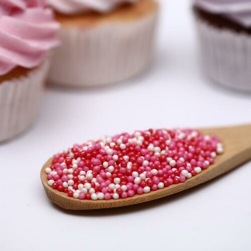 Посыпка кондитерская с мягким центром "Бисер" цветной "розовый, красный, серебро" 50 г