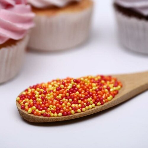 Посыпка кондитерская с мягким центром "Бисер" цветной "оранжевый, желтый, красный" 50 г