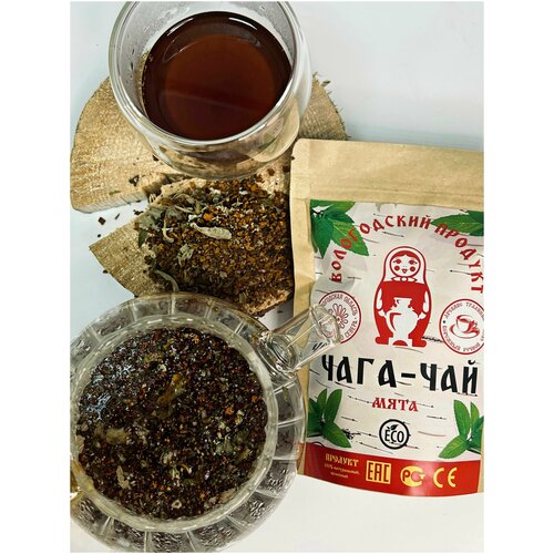 Чага-чай с мятой / Чага натуральная березовая / 200 гр / Сбор 2022г / ECOCHAGA