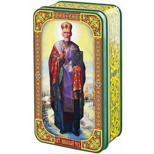 Чай в подарочной шкатулке "Святитель Николай Чудотворец" с магнитом (цейлонский чёрный крупнолистовой чай, ж/б 100 г).