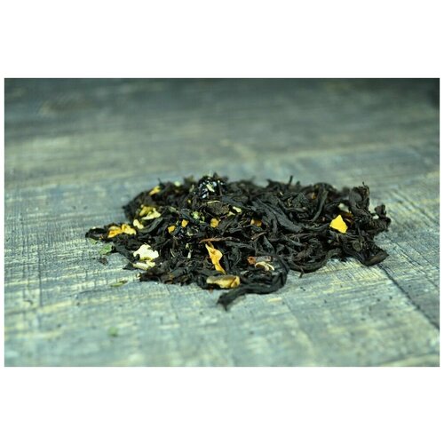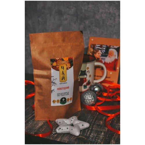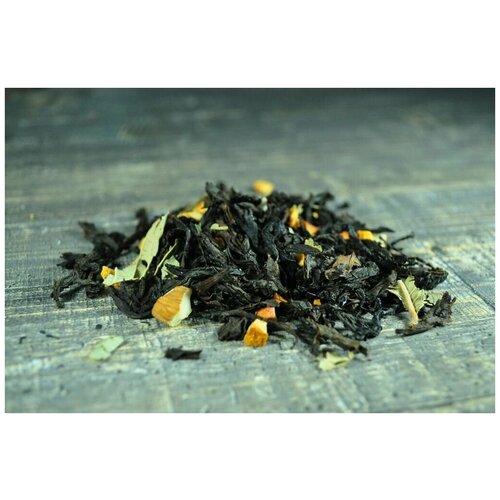 Черный чай Новогодний, чай крупнолистовой с добавками (яблоко, корица, цедра апельсина, имбирь дробленый) 200 грамм