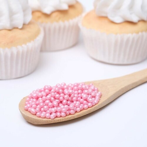Воздушный рис в кондитерской глазури "Жемчуг", розовый, диаметр 2-5 мм, 50 г