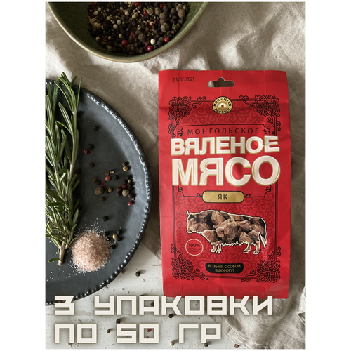 Вяленое мясо / Сушеное мясо / Як / Мясо яка вяленое / Набор 3 упаковки по 50 гр / закуска к пиву